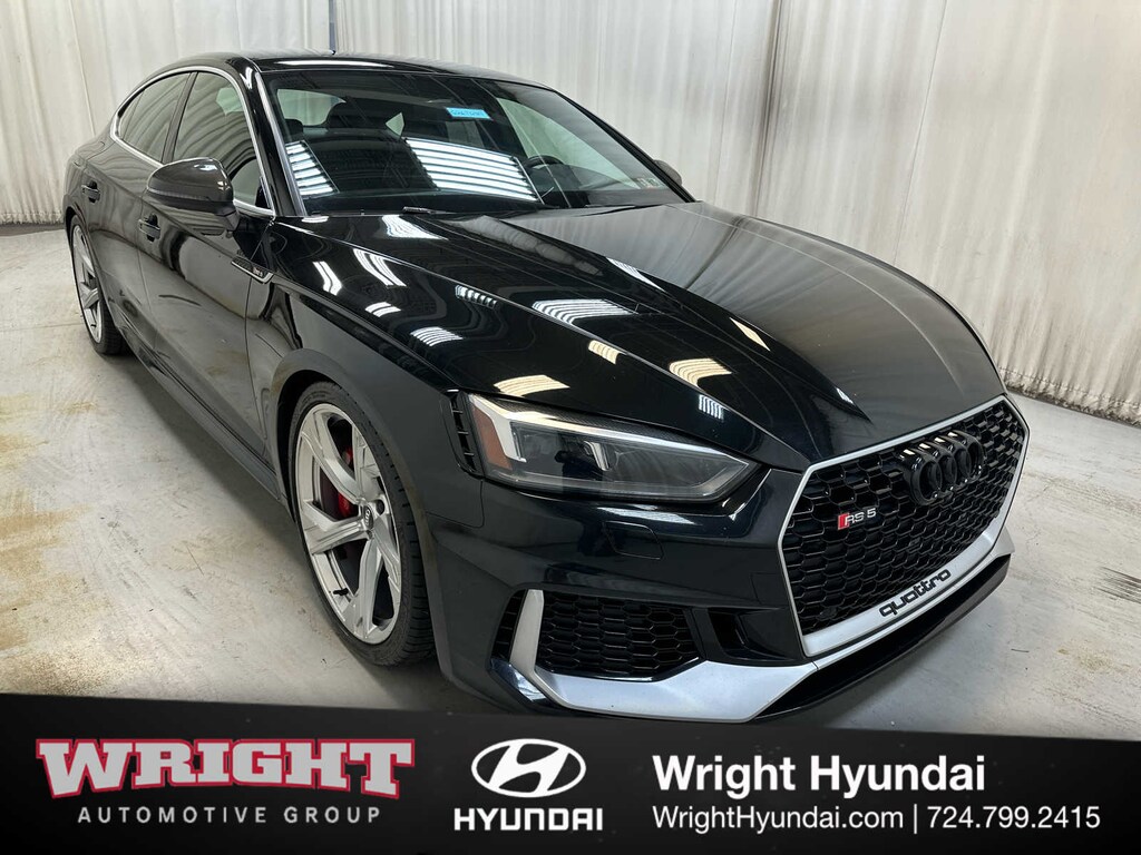 Leather Seats, Navigation, Sunroof, Power Liftgate, Rear Air, Heated Driver Seat, Back-Up Camera, Satellite Radio, iPod/MP3 Input, Onboard Communications System, Aluminum Wheels, Keyless Start, Dual Zone A/C, Cross-Traffic Alert, Smart Device Integration Audi RS 5 Sportback with Mythos Black Metallic exterior and Black w/Rock Gray interior features a V6 Cylinder Engine with 444 HP at 5700 RPM*. Rear Spoiler, MP3 Player, Remote Trunk Release, Keyless Entry, Child Safety Locks. Extra Clean