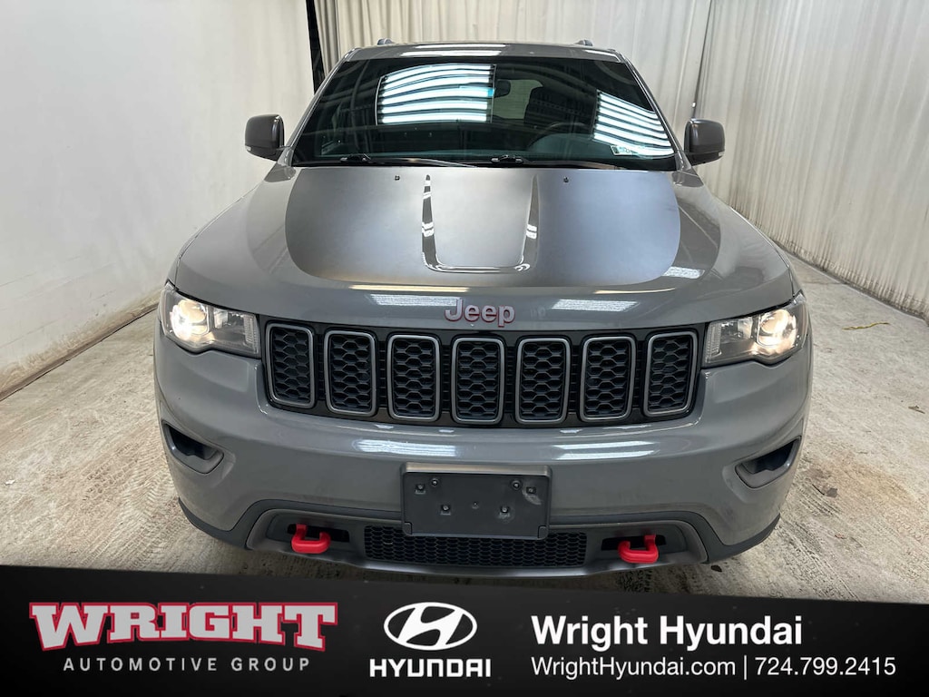 Leather Seats, Navigation, Sunroof, Power Liftgate, Heated Driver Seat, Heated Rear Seat, Cooled Driver Seat, Back-Up Camera, Premium Sound System, Satellite Radio, iPod/MP3 Input, Onboard Communications System, Trailer Hitch, Aluminum Wheels, Remote Engine Start Jeep Trailhawk with Sting-Gray Clearcoat exterior and Ruby Red/Black interior features a V6 Cylinder Engine with 295 HP at 6400 RPM*.